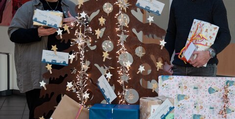 Und genau da setzte der Betriebsrat an, der in diesem Jahr erstmalig zwei lokale Institutionen eingeladen hatte, den Baum mit Wunschzetteln zu behängen. Was gebraucht oder gewünscht wurde, war jedem selbst überlassen, solange es sich im Rahmen bis 25 Euro bewegte. Und so reichten die hinterlassenen Wünsche vom Kino- und Friseurgutschein, über einen Aquarell-Malkasten bis hin zu Duploautos.