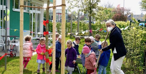 Anlässlich des „Tag des Baumes“ am 25. April hatten die Stadtwerke Troisdorf lokale Kindertagesstätten dazu eingeladen, sich um einen Baum für ihr Freigelände zu bewerben.