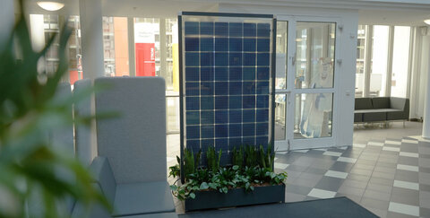 Matilda ist auch schon bei den Stadtwerke Troisdorf im Kundenzentrum eingezogen und zieht dort als bepflanzter, eleganter Sichtschutz die neugierigen Blicke der Kunden auf sich.