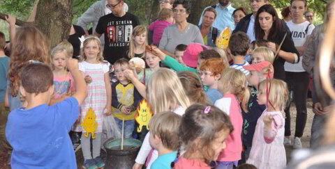 Zum Abschluss wurde im magischen Kessel eine Gummibärensuppe gekocht und selbstverständlich verspeist. Das Feuer bestand aus gelben und roten Waldmaterialien, die von den Familien während der Wanderung gesammelt wurden. Zur Gitarre wurden Lieder zum Thema Feuer gesungen und so gingen alle Teilnehmer froh, aber auch müde nach Hause. Den großen und den kleinen Teilnehmern hat dieser Nachmittag viel Freude bereitet und schon heute ist ganz klar: Im nächsten Jahr gehen wir wieder in den Herbstwald.