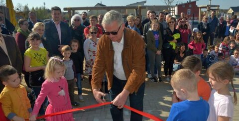 Bürgermeister Klaus-Werner Jablonski konnte zudem die Erzieherinnen, viele Eltern und natürlich die Kinder, die die neue Kita mit Leben füllen, bei strahlendem Sonnenschein begrüßen.