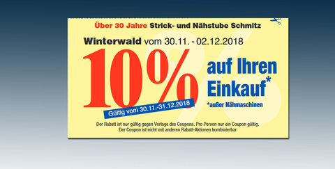 Die Strick- und Nähstube bietet euch zum Winterwald einen Rabatt von 10% - dazu gehört Nähzubehör, Stoffe, Accessoires und vieles mehr!
