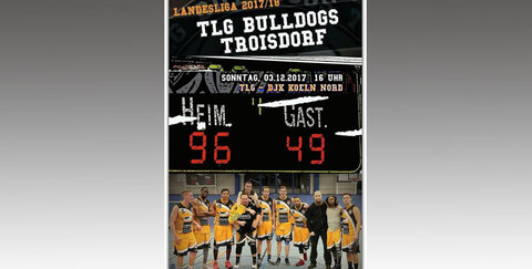 Aggressive Defensive gepaart mit gutem und flüssigem Angriffsspiel brachten schnell einen komfortablen Vorsprung (21:5; 7. Minute). Nachdem man mit 20 Punkten Vorsprung das erste Viertel für sich entscheiden konnte, ließ die Konzentration etwas nach und die Kölner zeigten dass sie nicht kampflos die Punkte abgeben wollten und verkürzten den Rückstand bis auf neun Punkte (32:23; 13. Minute). Zwei Auszeiten innerhalb von einer Minute brachten die Bulldogs dann aber wieder zurück auf die Spur und der alte Abstand konnte bis zur Pause fast wieder hergestellt werden (50:33; 20. Minute). Nach der Halbzeit vergrößerten die Hausherren die Vorsprung schnell auf knapp 30 Punkt e (60:33; 25. Minute) , sodass das Spiel frühzeitig entschieden war und fleißig durchgewechselt werden konnte.