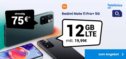 O2 All Net Flat 12 GB inkl. Redmi Note 11 Pro 5G, für einmalig 75,00 EUR