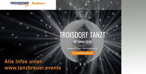 Am 06. Januar 2019 heißt es "Troisdorf tanzt". Zelebriert mit der Tanzschule Breuer 30 Jahre Tanzen im Rhein-Sieg-Kreis mit vielen kostenlosen Workshops und Shows. Stattfinden wird das Event in der zukünftigen, neuen Filiale in der Poststraße 64 in Troisdorf-Mitte.