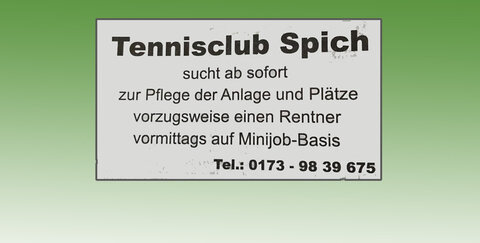 Zur Pflege ihrer Anlagen und Plätze sucht der Tennisclub Spich für Vormittags eine Aushilfe auf Minijob-Basis - vorzugsweise einen Renter.