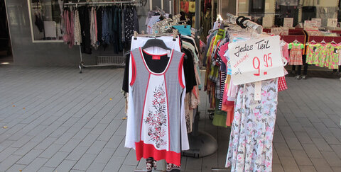 Der Laden hat sehr viel reduziert. Jedes Teil der gekennzeichneten Stücke ist auf 9,95 Euro reduziert.