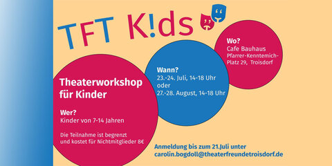 - Anmeldung bis zum 21 Juli bei carolin.bogdoll@theaterfreundetroisdorf.de