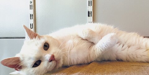 Man sieht ihr das Alter nicht an: Die bildhübsche Kalina wird auf 15 Jahre geschätzt und ist mit ihrem reinweißen Fell ein echter Blickfang. Als ob sie es wüsste, räkelt sie sich gerne vor dem Ausgang ihrer Höhle und betrachtet ihre Umgebung – vielleicht kommt jemand vorbei, um sie zu bewundern? Wenn er dann noch eine Daumenspitze Schlecksnack mitbringt, ist der Tag gerettet, und mit ein paar Streicheleinheiten die Freundschaft begründet.