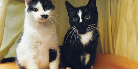 Gisma und Tammy sind ein wunderbares Geschwisterpärchen – die eine könnte ohne die andere nicht sein. Deswegen werden sie nur gemeinsam vermittelt. Gisma, weiß mit schwarzer Zeichnung, ist die etwas zutraulichere.