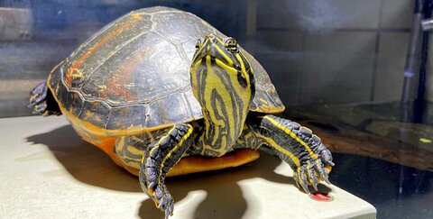 Anders als viele andere Wasserschildkröten kann Emmy nicht in Außenhaltung leben.