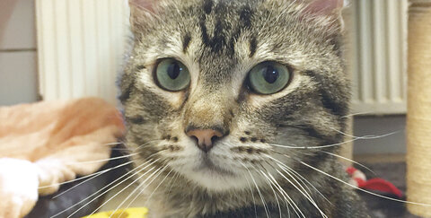 Das erste, was bei Kater Bozo auffällt, ist sein fehlender linker Hinterlauf. Das zweite seine Neugier und Zutraulichkeit: Sobald er Besuch sieht, hoppelt er fröhlich an die Boxentür und freut sich über jedes gute Wort, jedes Leckerchen und jede Streicheleinheit. Gäste werden vorbehaltlos willkommen geheißen und angeschnurrt, dann macht es sich der Zweijährige schnell auf dem Schoß bequem. Bozo sollte wegen seines Handicaps in Wohnungshaltung zu ruhigen, sozialen Mitbewohnern.