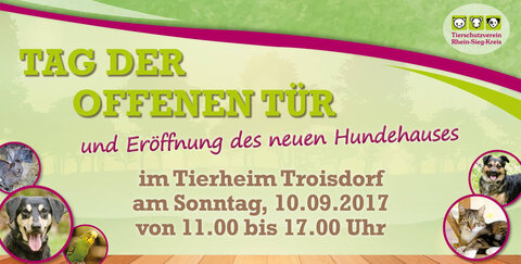 Am 10.09.2017 wird im Tierheim Troisdorf am Tag der offenen Tür das neue Hundehaus eingeweiht.