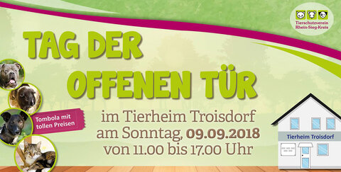 Am Sonntag, dem 09.09.2018 findet im Tierheim Troisdorf von 11 bis 17 Uhr der Tag der offenen Tür statt.