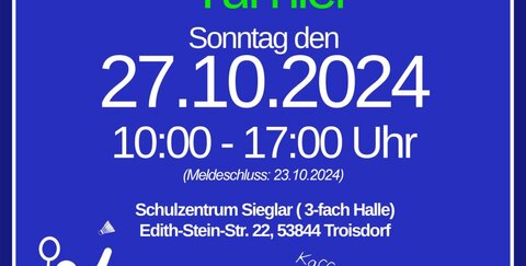 Hinweis: Integra Badminton Turnier in der 3-fach Halle Sieglar (27.10.2024)