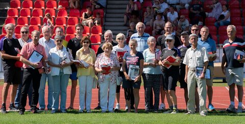 der TLG am letzten Sonntag der Ferien (07.08.). Bei herrlich sommerlichem Wetter veranstaltete der Verein erstmals ein Sommerfest, an dem sich alle Abteilungen beteiligten. Über den Tag verteilt besuchten ca. 350 Mitglieder, Eltern, Großeltern und Freunde die Veranstaltung.Mit einer Showeinlage eröffnete der Jugendausschuss das fünfstündige Programm. Anschließend bestand die Möglichkeit, sich sportlich zu betätigen. Von dem Angebot wurde rege Gebrauch gemacht. Die Abteilung Basketball hatte einen portablen Basketballkorb vor Ort. Was bei Profis wie Dirk Nowitzki – dem ehemaligen deutschen Basketballer, der von 1998 bis 2019 in der nordamerkanischen Profiliga NBA für die Dallas Maveriks spielte – immer so einfach aussieht, entpuppte sich bei Basketball-Laien als echte Herausforderung. Es ist gar nicht so einfach den Ball in den 3,05 Meter hohen Korb zu werfen. Ganz schön anstrengend waren die Angebote der Abteilung TSV (Turnen, Spielen, Volleyball). Bei ihnen konnte Badminton gespielt werden, was outdoor gar nicht so einfach ist. Mit Federball, wie man es vielleicht noch aus Kindheitstagen kennt, hat Badminton nichts zu tun. Auch das Volleyballspiel kann in freier Natur ganz schön schweißtreibend sein. Ebenso eine Partie Fußball im XXL-Menschenkicker. Der Spaß an der Bewegung stand jedoch im Vordergrund und nicht der sportliche Kampf um Punkte oder Körbe. Der Renner an diesem Sommertag war natürlich, insbesondere für die Kinder, die Wasserrutschen-Burg. Die war ohne Unterbrechung voll in Beschlag. Die Abteilung MUT (Marathon- und Ultra-Team) war ebenfalls mit einem Stand vor Ort. Sie stellten ihren Sport vor und klärten auf, dass bei ihnen nicht nur Halbmarathon, Marathon und Ultra-Läufe auf dem Programm stehen, sondern auch einfache Laufrunden, die jeweils montags und mittwochs angeboten werden und am Aggerstadion starten (siehe Website unter: https://troisdorfer-lg.de/training-mut/). Am Nachmittag wurden durch den Gesamtvorstand die Mitglieder geehrt, die seit 25, 40 und 50 Jahren dem Verein die Treue halten. Sie erhielten als Dank neben der Urkunde und der TLG-Chronik eine Glaskaraffe mit eingraviertem TLG-Logo, Namen und Jahren der Vereinszugehörigkeit.Für das leibliche Wohl war ebenfalls besten gesorgt. Die Organisation und Umsetzung des Sommerfestes war ein voller Erfolg. Ein großes Dankeschön allen, die zum Gelingen dieses Festes beigetragen haben. Im nächsten Jahr soll es eine Fortsetzung des Sommerfestes geben.