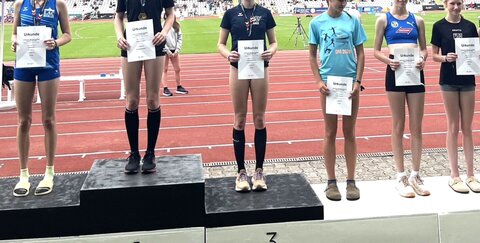 Hanna Block, ganz rechts, wurde 6. bei den Deutschen Meisterschaften im Donaustadion.