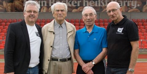 V.l.n.r. Ralf Saborowski, Josef Pees (†), Jubilar Karl-Heinz Merkel, Wolfgang Becker
