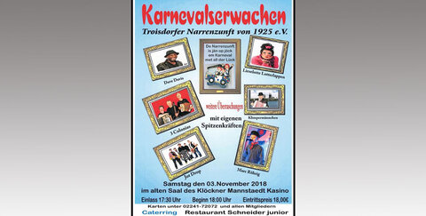 Die Troisdorfer Narrenzunft von 1925 e.V. veranstaltet am 03. November ein "Karnevalserwachen"