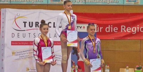 Gratulation: Die Troisdorfer Turnerin Michelle Kunz wird Deutsche Jugendmeisterin 2018 am Schwebebalken und gewinnt Bronze am Boden.