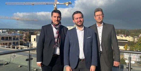 Bürgermeister Alexander Biber (l.) und Ralf Klösges (r.) begrüßen den neuen TROWISTA-Geschäftsführer Alexander Miller (m.). Foto: Stadt Troisdorf.