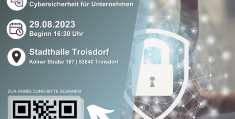 Die TROWISTA informiert am 29.08.2023 in der Stadthalle Troisdorf zum Thema „Cyber-Sicherheit für Unternehmen“: Maßnahmen, Fördermittel bis zu 15.000 Euro, Live-Hacking und vieles mehr werden von Experten vorgestellt.