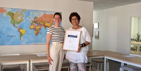 v.l.n.r.: Wirtschaftsförderin der TROWISTA Miriam Grüters und Geschäftsführerin der LOQlearn GmbH Maria Harder