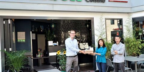 TROWISTA-Wirtschaftsförderer Fabian Wagner gratulierte den Eheleuten Le zur Eröffnung des Restaurants und überreichte das Troisdorfer Willkommenspaket: „Saigon Cuisine rundet das gastronomische Angebot rund um den Fischerplatz hervorragend ab. Insgesamt zeichnet sich Troisdorf durch eine große Vielfalt an attraktiven Gastrokonzepten aus - für wirklich jeden Geschmack ist etwas mit dabei“, so Wagner.