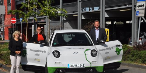 Wirtschaftsförderer sind mit E-Car-Sharing der Stadtwerke Troisdorf und E-Bike in Troisdorf unterwegs