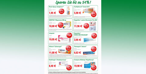 Auch in diesem Monat erhalten Sie in Ihrer Apotheke wieder rezeptfreie Produkte zum Angebotspreis, zum Beispiel: