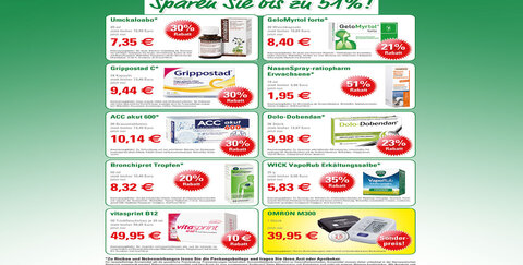 Auch in diesem Monat erhalten Sie in Ihrer Apotheke wieder rezeptfreie Produkte zum Angebotspreis, zum Beispiel: