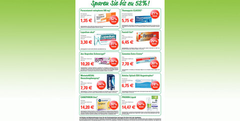 Auch in diesem Monat erhalten Sie in Ihrer Apotheke wieder rezeptfreie Produkte zum Angebotspreis, zum Beispiel: