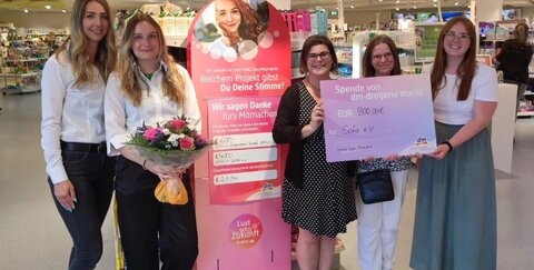 "Wir freuen uns riesig und sagen herzlichen Dank an alle dm-Kunden und -Kundinnen, die unseren Verein SoFa e.V. im Aktionszeitraum ihre Stimme gegeben haben. Wir durften gestern bei der Spendenübergabe eine Spendensumme in Höhe von 800€ entgegen nehmen. Dieses Spendengeld wird in verschiedene Aktionen für unsere Familien investiert. Ein großes Dankeschön geht an dm und die stetige Unterstützung für die Familien von SoFa e.V. Es hat riesen Spaß gemacht einen Tag bei Ihnen in der Filiale unseren Verein zu präsentieren."
