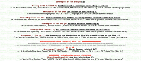 31.05.2021: Wanderungen im Juni 2021