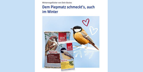 Viele Wildvögel haben im Winter Schwierigkeiten, ausreichend Nahrung zu finden. Futterstellen in Gärten und auf Balkonen mit nahrhaften Körnermischungen von Dein Bestes sind bei den gefiederten Freunden deshalb sehr beliebt.
