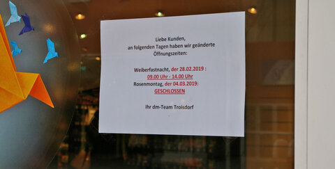An folgenden Tagen hat der dm-Markt in der Kölner Straße geänderte Öffnungszeiten