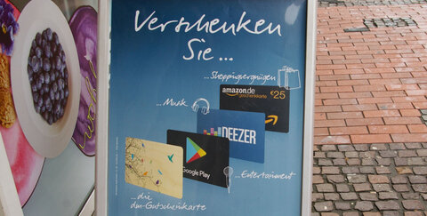 Unterschiedliche Geschenkkarten bei dm erhältlich