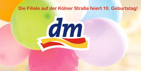 Der dm-Markt in der Kölner Straße 9–11 feiert vom 12. bis 17. Oktober 2015 seinen 10. Geburtstag!