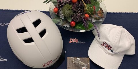 Damit wir nicht nochmal das Sanitätsrad bemühen müssen, bekommt das Cap einen stabilen Partner! Radfahren jetzt nur noch mit Helm, natürlich im megra-Look!
