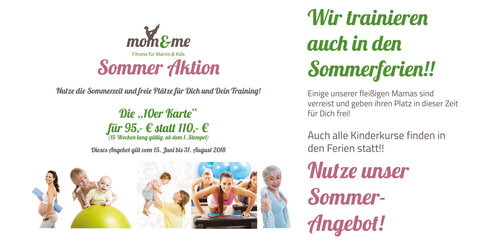 mom&me bietet euch ein besonders Angebot für euer Sommer-Training - gültig von 15. Juni bis 31. August 2018: