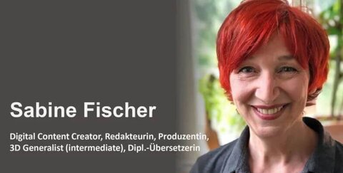 Sabine Fischer ist der Kopf des Unternehmens. Sie ist Digital Content Creator, Redakteurin, Produzentin, 3D-Generalistin und Diplom-Übersetzerin.