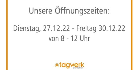 Tagwerk passt die Öffnungszeiten der Niederlassung zwischen Weihnachten und Silvester an und ist für Euch wie folgt in Troisdorf erreichbar.