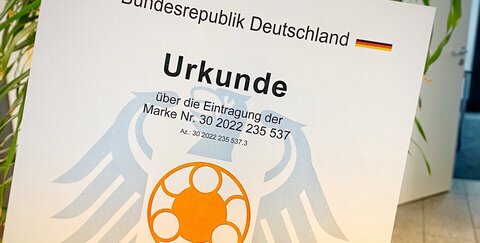 Seit einiger Zeit ist es offiziell beim Markenamt eingetragen. Als Bestätigung gab´s 'ne Urkunde...auf Papier.