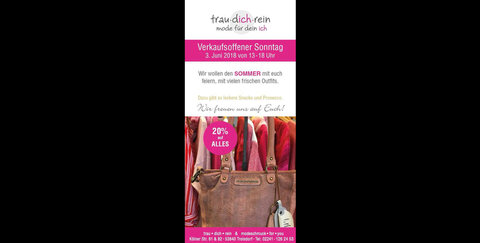 Während des verkaufsoffenen Sonntags am 03. Juni 2018 könnt ihr tolle Schnäppchen bei trau.dich.rein ergattern!