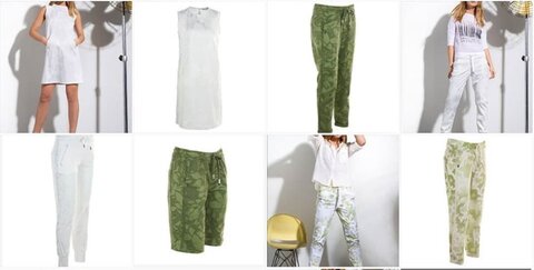 Beachtet besonders, die wunderschönen weißen Hosen und Oberteile mit dem leicht glänzendem Blumen- und Camouflage Print. Ein Traum!