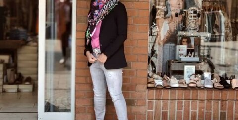 Das Outfit ist von ELIAS RUMELIS, Blazer Giselle und Jeans Lucia day Grey. Das Tuch ist von Plomo o Plata.